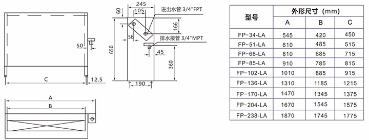 2、制冷工况:进风干球温度27℃,湿球温度19.5℃,冰水进水温度7℃,出水温度12℃。