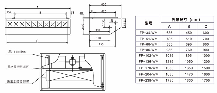 2.供冷新风工况:进风干球温度34℃,湿球温度28℃,进水温度7℃,出水温度12℃。