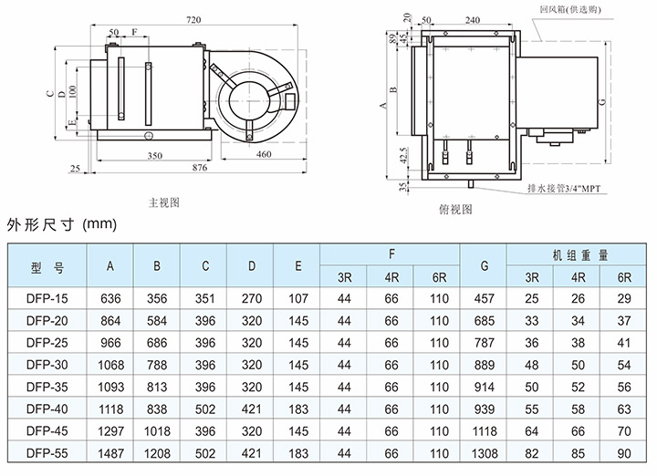 4、普通型机组为机外静压12Pa,高静压机组机外静压30Pa,50Pa高静压机组可另行提供。