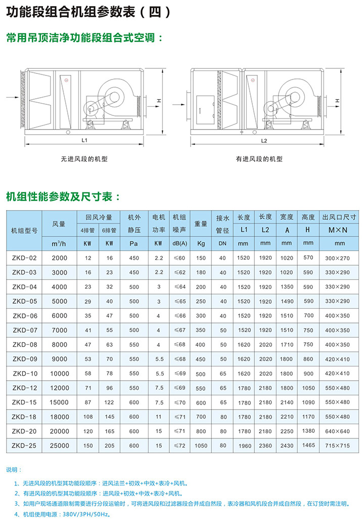 1、ZK系列组合式空气处理机组是本公司在吸收了国内外先进空调技术基础上,严格按照中国国家标准进行设计制造,功能齐全,性能稳定,用途广泛,各种功能可灵活组合,是现代中央空调领域中常用产品之一。