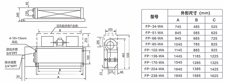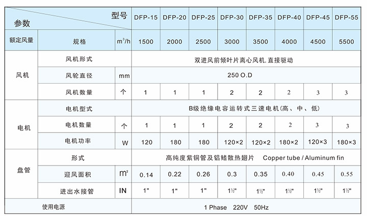 4、普通型机组为机外静压12Pa,高静压机组机外静压30Pa,50Pa高静压机组可另行提供。