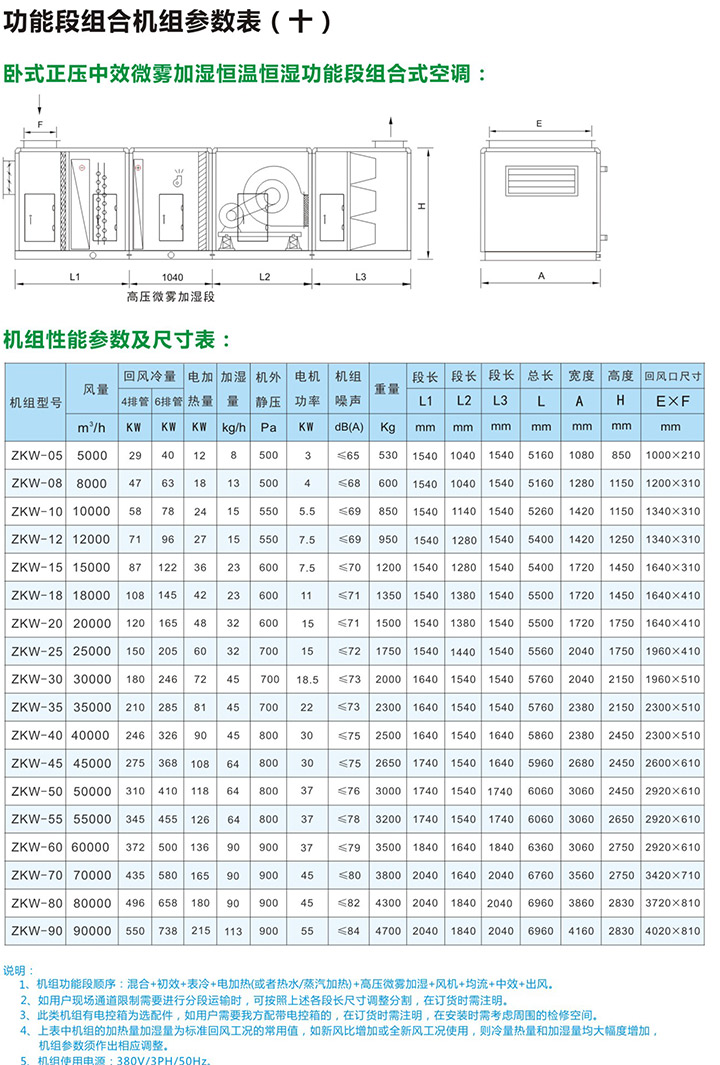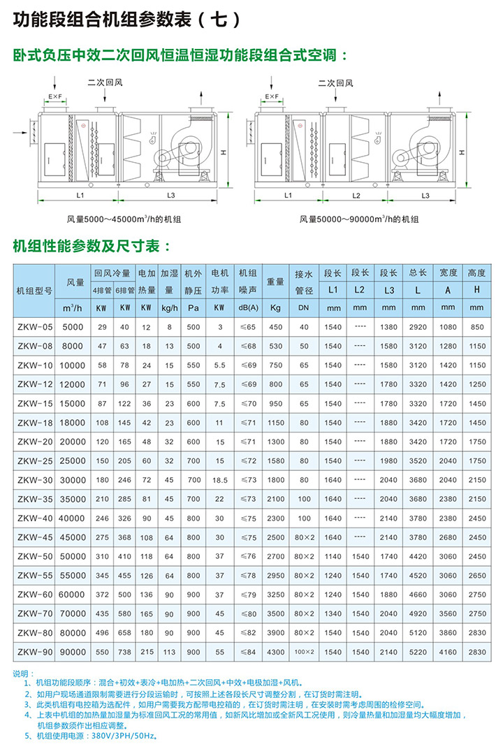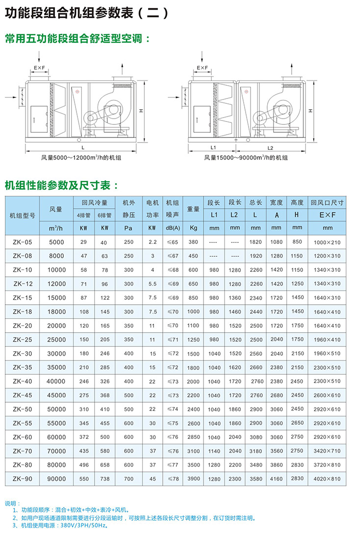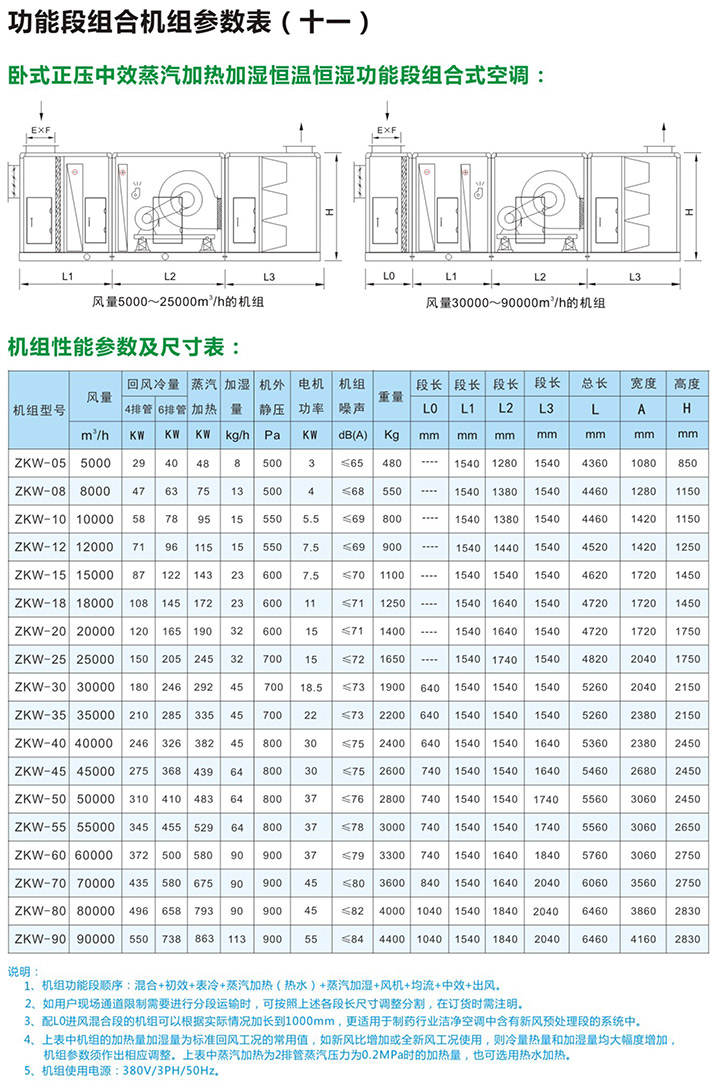 5、组合式空气处理机组有近十多种功能,用户可根据工程需要,任意选择组合。订货时请向本公司提供组合示意图一张,并注明主要技术参数及安装尺寸要求等。