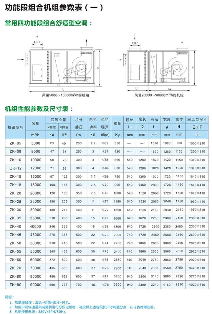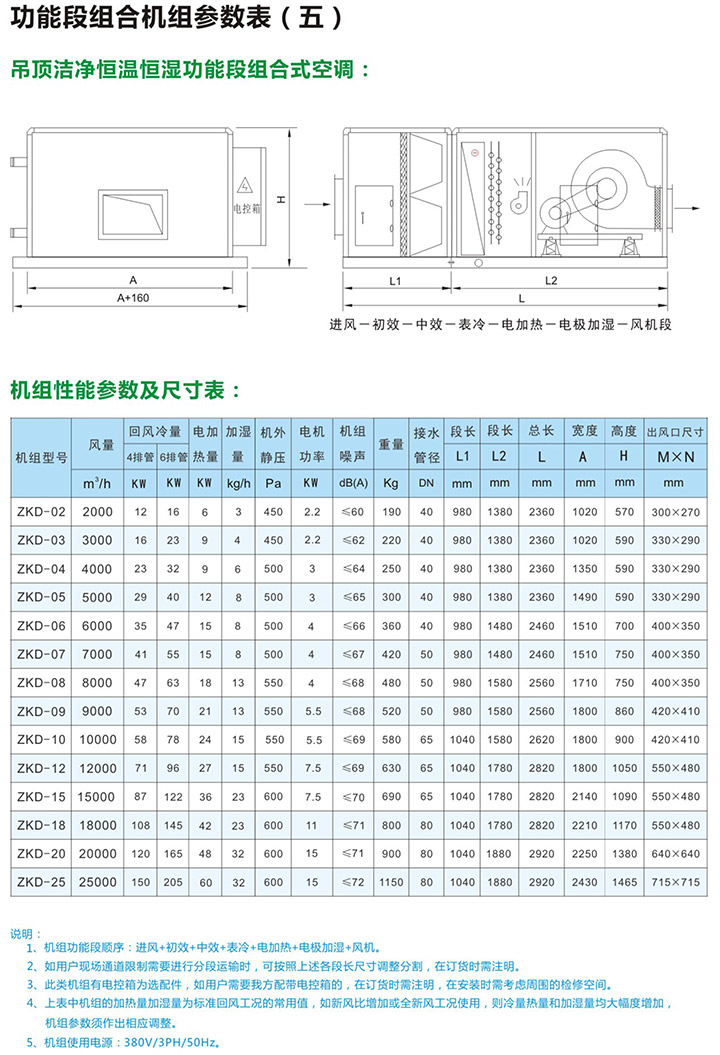 1、ZK系列组合式空气处理机组是本公司在吸收了国内外先进空调技术基础上,严格按照中国国家标准进行设计制造,功能齐全,性能稳定,用途广泛,各种功能可灵活组合,是现代中央空调领域中常用产品之一。